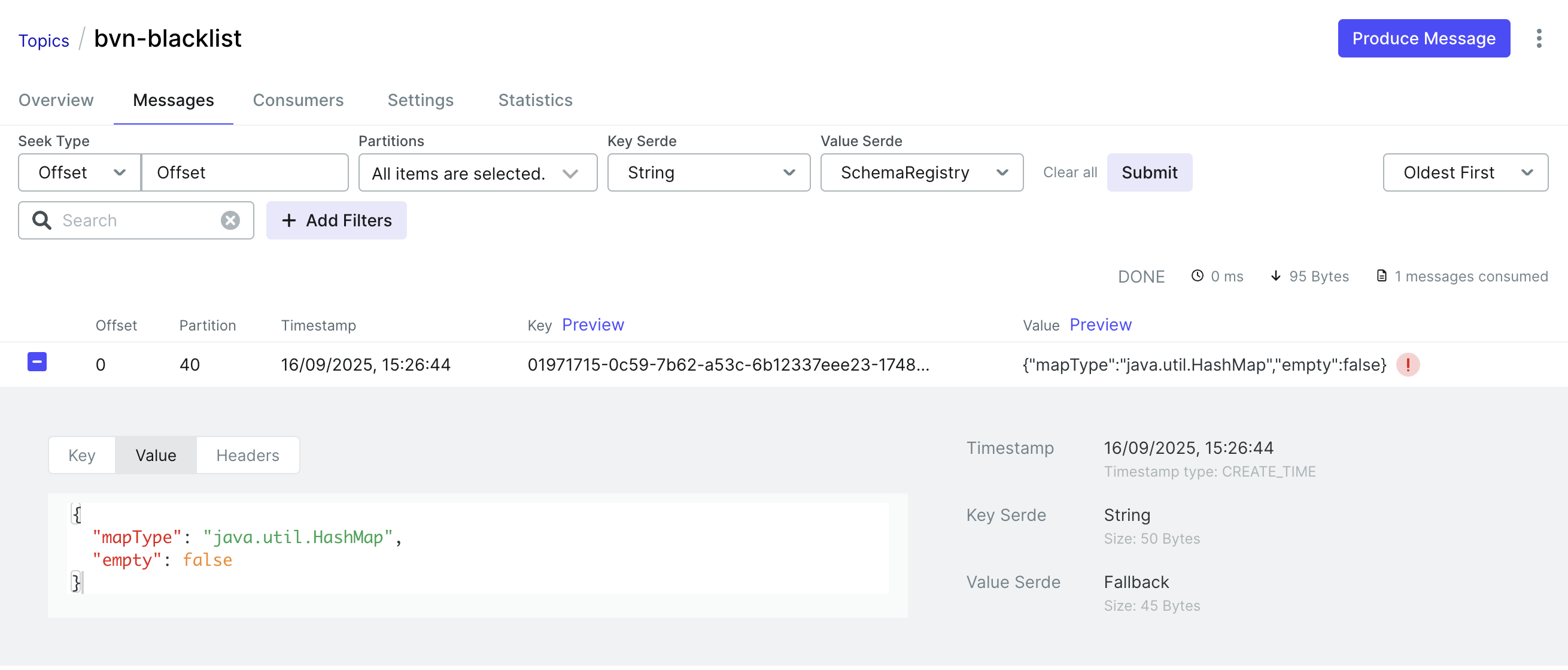 Validating KAFKA Message delivery inline with resolution action to be carried out post webhook delivery.