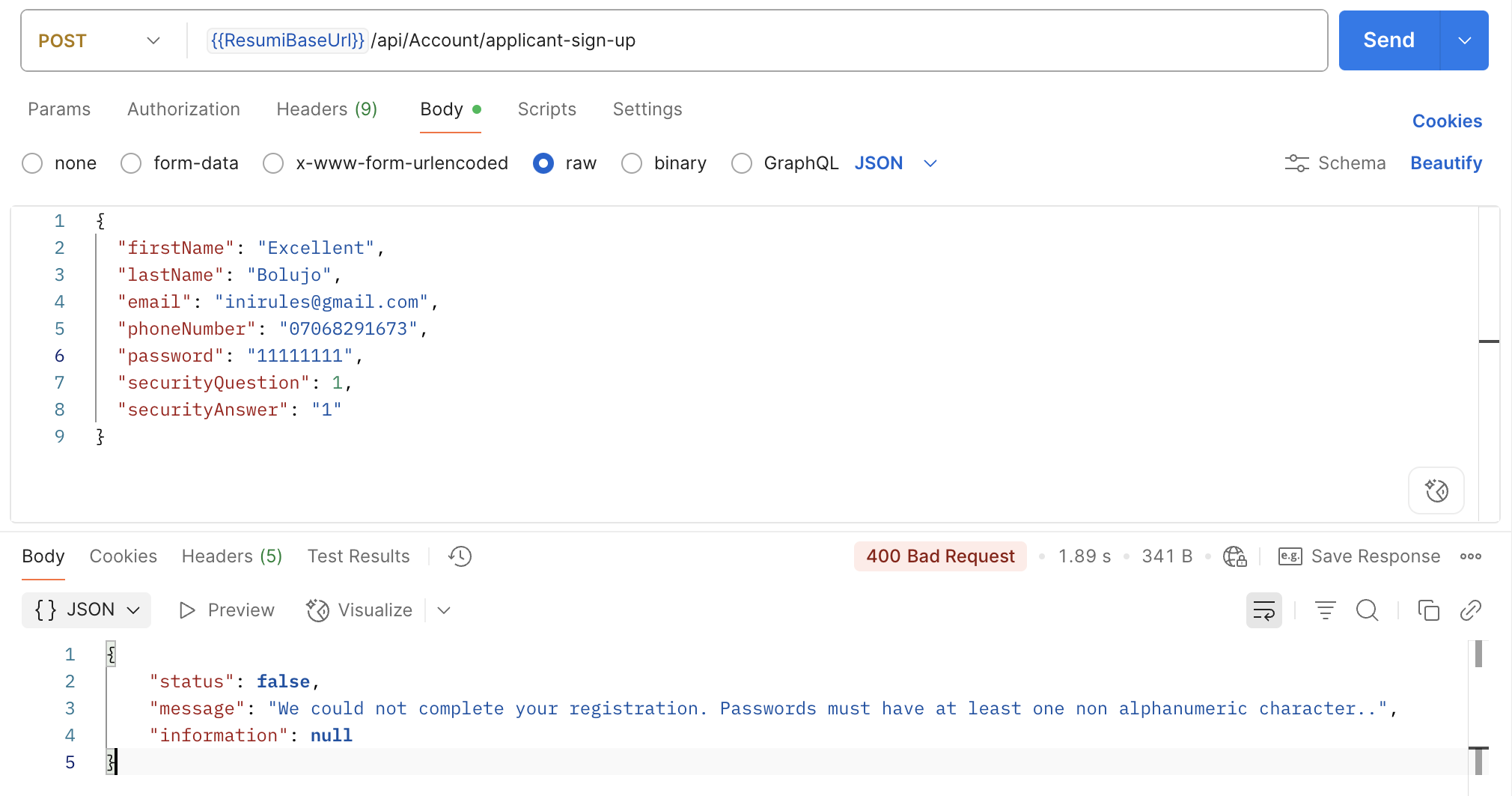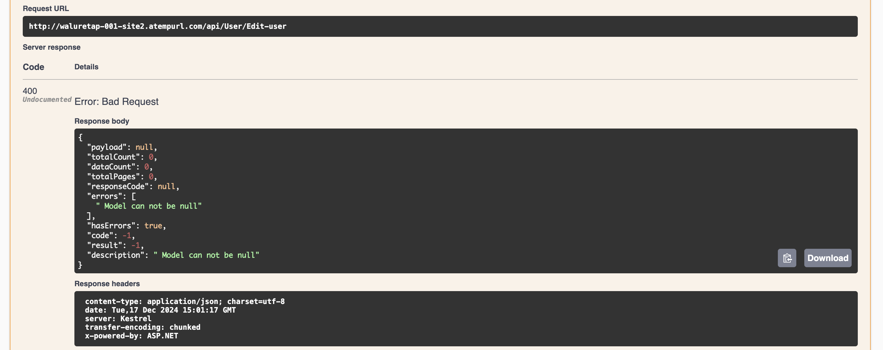 Validating bad request error message response (Required, Cannot be blank or empty)
